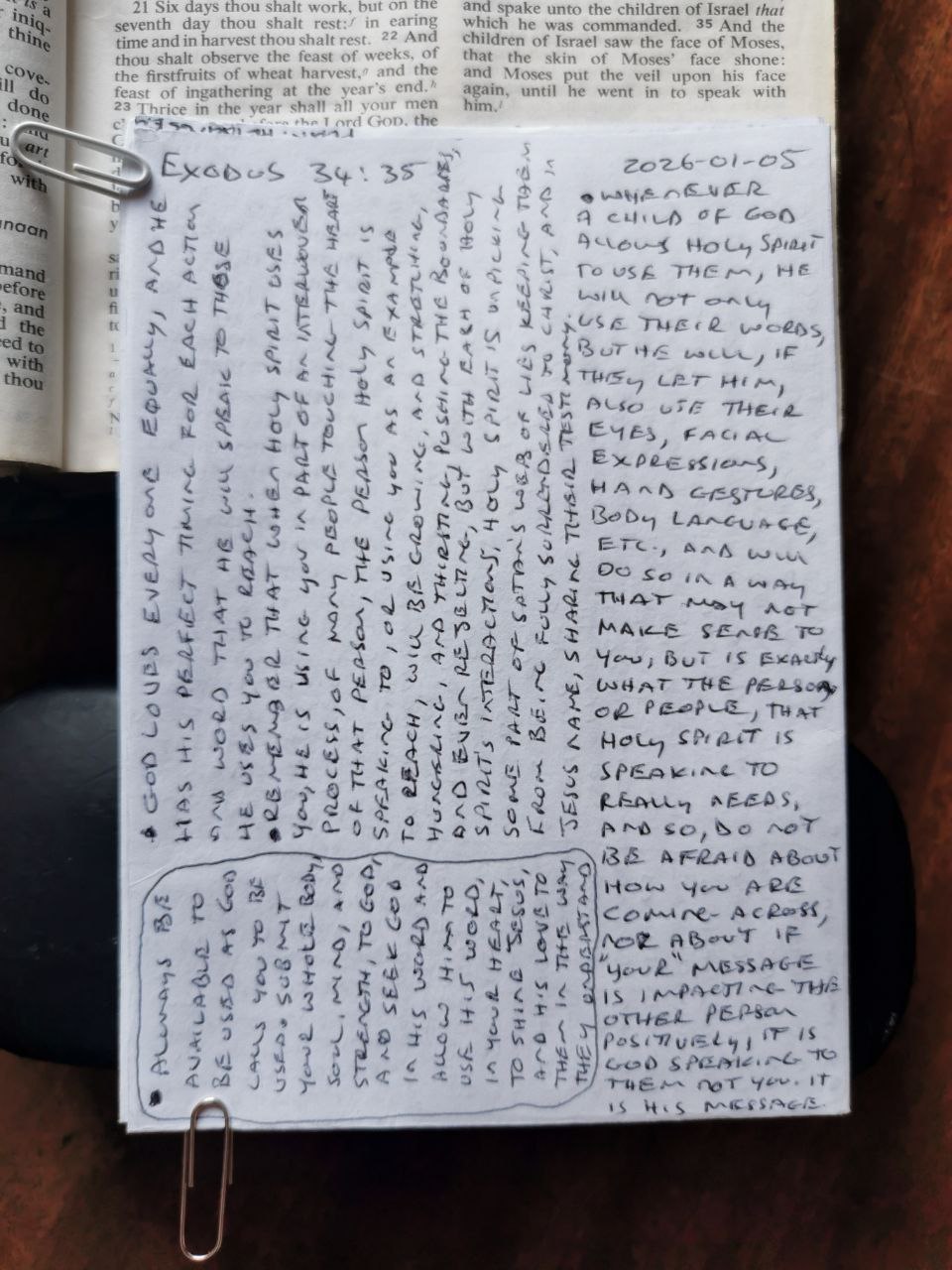 2026-01 - Quiet Time Messages Exodus 34:31 to 35:27